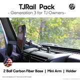• A complete TJRail™ pack of components needed for a clean installation on the top dash of a Jeep® TJ.